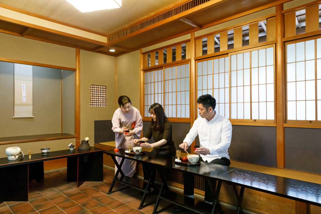 At Uji City Municipal Tea Ceremony House, Taiho-an, you can experience authentic Uji tea accompanied by a seasonal Japanese sweet. If you don’t know anything about Japanese tea ceremonies, there’s no problem. In the Making Tea Experience (Otemae Taiken), you can first watch a tea master, who is from Uji City Tea Ceremony Association, prepare matcha green tea in the traditional way. After savoring the sweet and matcha, try whisking your own bowl of matcha with a chasen (a tea whisk).