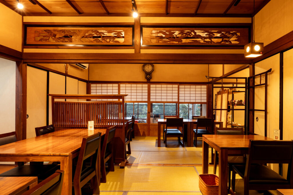 One such place is Yamanoue Shokudo in Yosano-cho in the northern part of the prefecture that is known as “Kyoto by the Sea.” The restaurant itself is about 20 minutes from the coast by car partway up the verdant Mt. Oeyama. It’s part of Kaya Yamanoie, a guest house that opened in 2021 in a newly renovated accommodation facility that has served the area for more than 40 years.