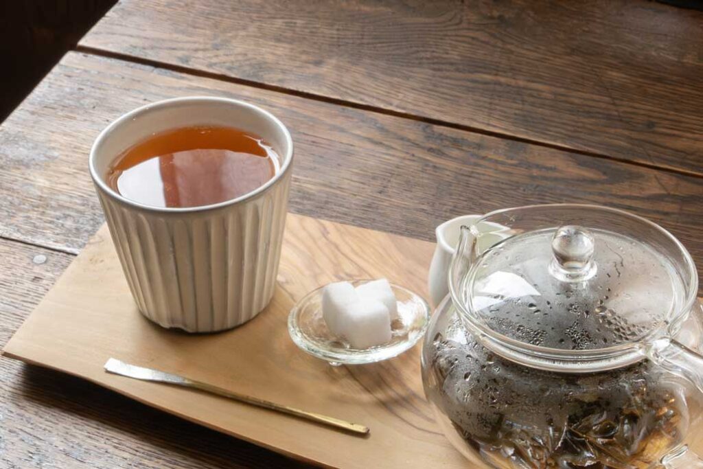 To top off the meal, let’s indulge in an elegant tea time! Enjoy a pot of wakocha (Japanese black tea) with your choice of tea leaves. Benifuki is so fragrant—it truly brings joy! Watch time gently melt away while you relax. The selection also includes the varieties Yabukita, Okumidori, Saeakari, and Zairai.