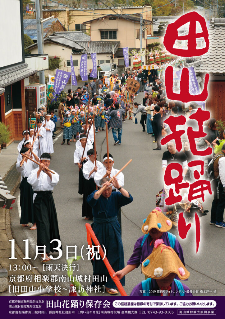Speaking of Minamiyamashiro Village, Tayama Hana Odori will be held on November 3 (a national holiday)! With its long history, it is a designated Intangible Folk Cultural Property of Kyoto. Originally a religious event to pray for rain, it is now performed to wish for a bountiful harvest and for good health and safety for families. Though once lost in the Taisho era (1912–1926), it was successfully revived in 1963. Cafe Nekopan will also be open on November 3, so why not come and enjoy both?