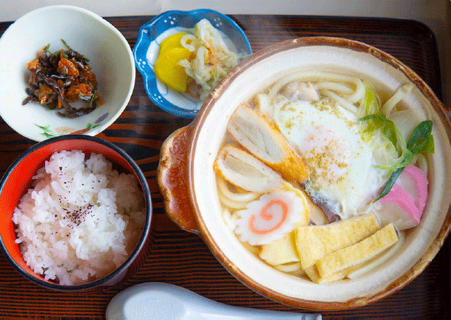 Chatting with the owner, my stomach’s beginning to growl, so I order some hotpot udon noodles (nabeyaki udon), tanuki soba noodles with fried tempura bits, and ankake udon noodles with their thick, starchy sauce.
