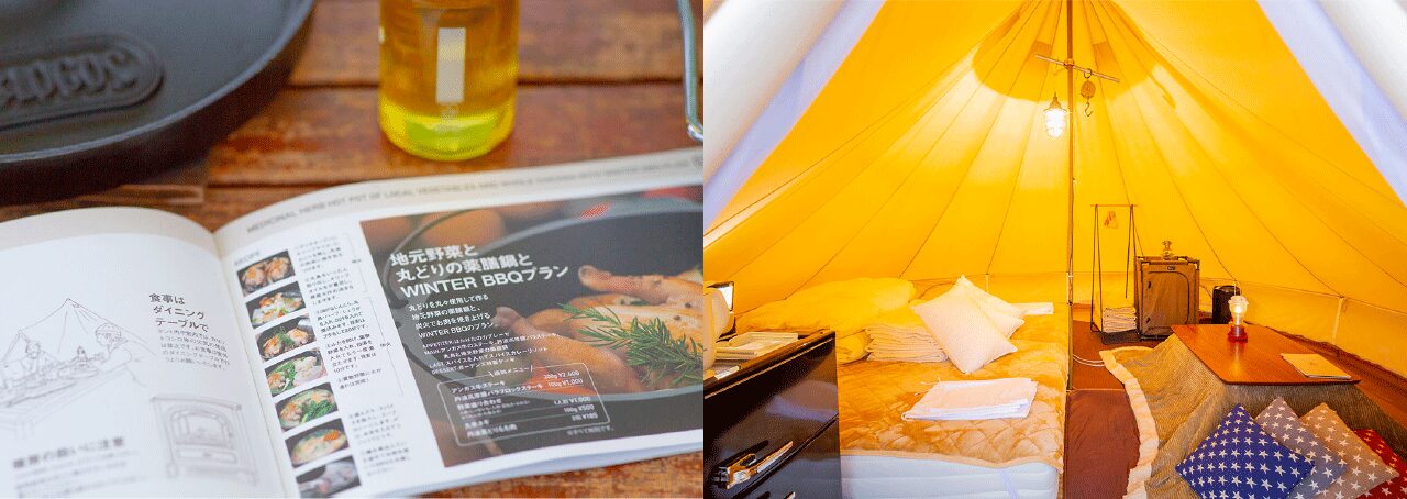 Mr. Nishioka: “We prepare all of the food ingredients and fire starters, so all our guests have to do is enjoy the cooking and eating. At GRAX, we use a lot of local and Kyoto-grown ingredients, and every recipe is easy to follow. Let me show you your tent.”