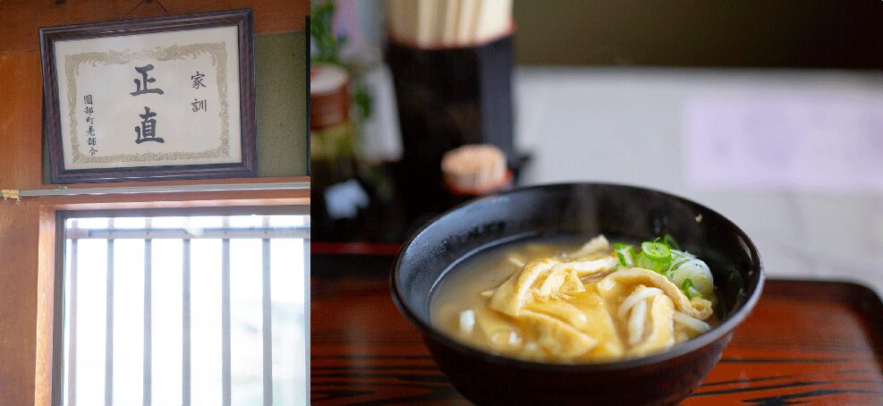 The broth in these dishes is gentle and exquisite – as you might expect from training at a Kyoto ryotei restaurant. The noodles are not the firm kind that we’ve all grown accustomed to, and are much closer to the old-fashioned style of Osaka udon. As I eat, locals continue to enter the restaurant, and I overhear them chatting easily with the owners in the local dialect: