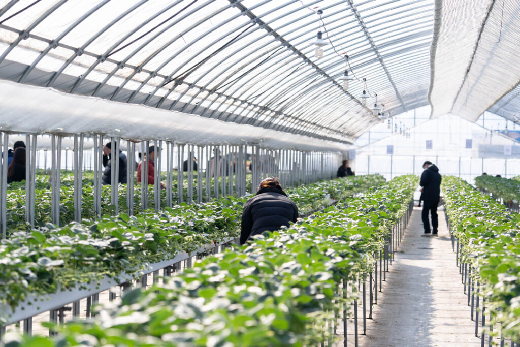 Let’s enjoy strawberry picking at Hanayagi Strawberry Farm! Stepping into their spacious greenhouse, I was enveloped in a sweet aroma that felt like a dream—even before my first bite! It was also wonderful to see families with little ones; the farm is stroller-friendly. I was so excited! There’s nothing like wandering through rows of fresh strawberries! Finding a big, ruby-red berry is like a little shot of happiness. I couldn’t help but shout, “Found one!” Each bite was a perfect burst of sweet and tart flavors—I was grinning from ear to ear the whole time!
