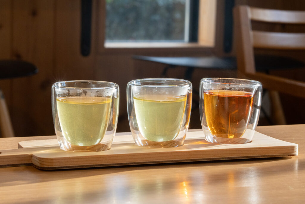 Wazukacha Cafe, in Wazuka Town, is located near the town office and the Wazuka-yamanoie bus stop. You can get tourist maps and information here, making it a great first stop on your trip. The inviting cafe offers sweets, drinks, and more, made with tea from Wazuka. Additionally, they have Tenku Cafe, providing a private retreat in an elevated location. From there, you can enjoy a panoramic view of Wazuka while savoring delicious tea, sweets, and so on. At the shop, there is a wide selection of about 140 teas, locally made products, and more. You can also find single-origin teas grown in the town. Unlike common teas, which are blended from leaves from multiple tea plantations, these single-variety teas bring you experiences of unique character of each farm's harvest that year. Also, electric bicycles are available for rent. No matter when you visit, cycling through the town, surrounded by nature with breathtaking tea plantation scenery, is a truly enjoyable experience.
