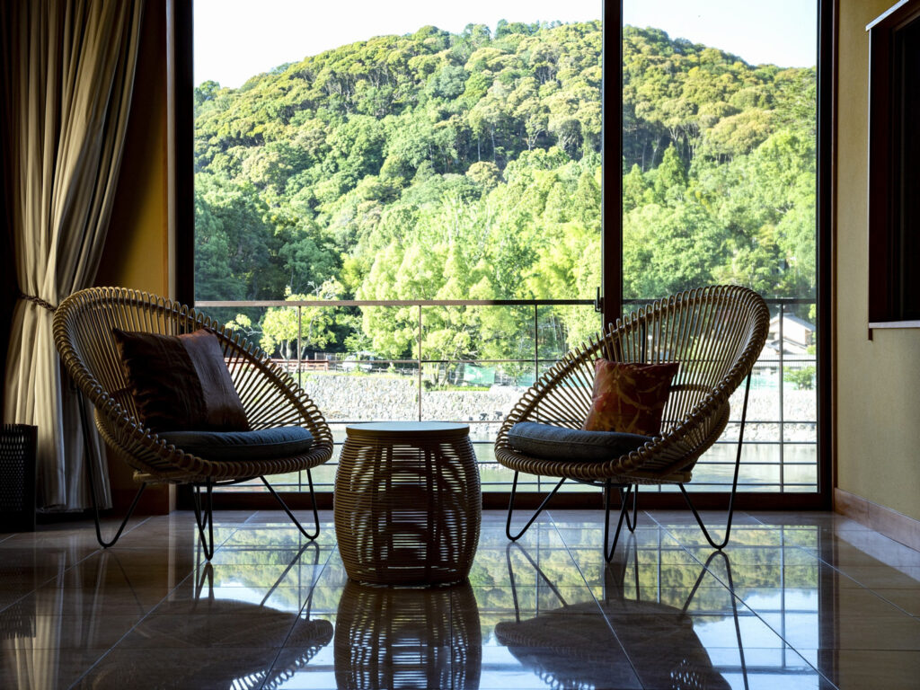 All rooms at Hanayashiki-ukifune-en face the Uji River, offering guests stunning views that change with the seasons: fascinating cherry blossoms in spring, rushing river water that blows away the summer heat, beautiful fall foliage in the mountains, and amazing scenery on snowy days. Leave the hustle and bustle of the city and immerse yourself in the relaxing time. You can also savor authentic, traditional cuisine, Kyo-Kaiseki made with seasonal ingredients, allowing you to feel the wonders of Kyoto's culture. It will be a delightful experience to enjoy a luxury meal while gazing out at the scenic beauty of the river changing with seasons.