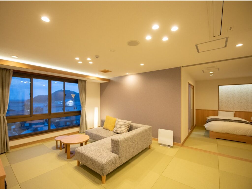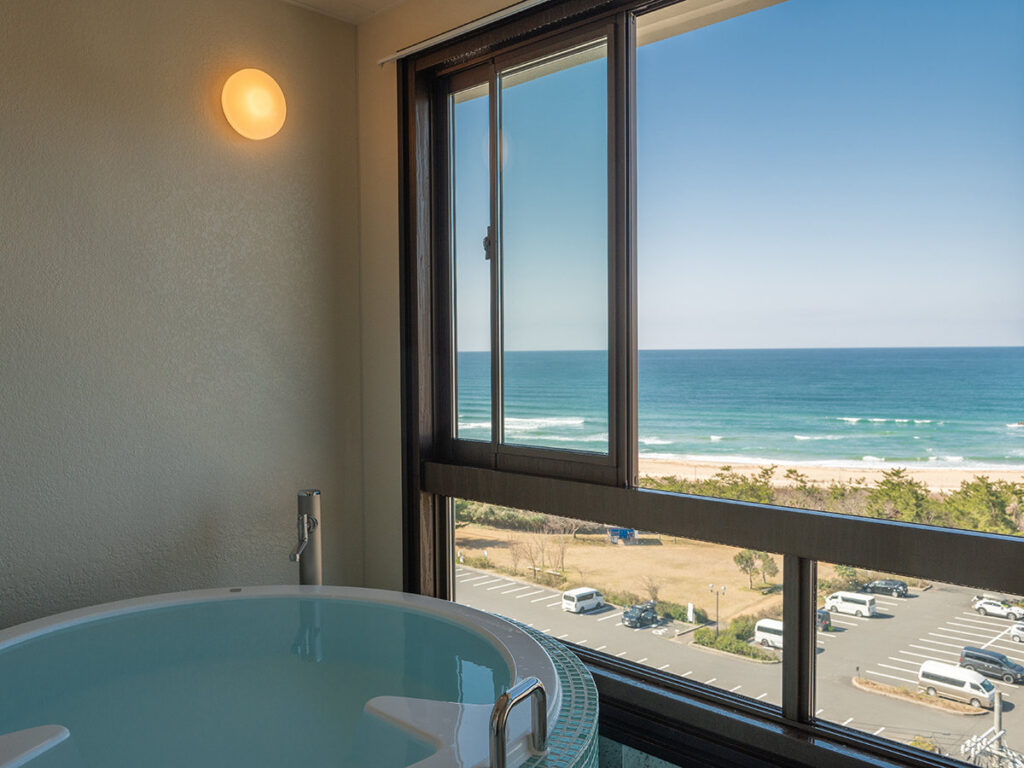 All guest rooms offer a direct view of the Sea of Japan.Special suites are available, featuring comfortable beds and a private hot spring bath.Complimentary shuttle service is available to and from the nearest station.
