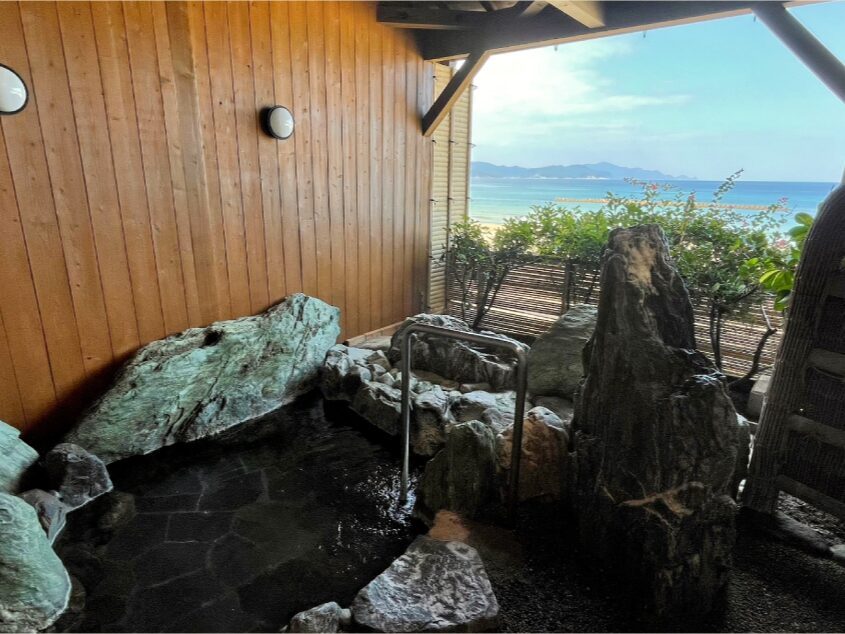 Guests can unwind in the natural hot spring of Yuhigaura Onsen, known for its smooth and gentle water. The open-air bath offers a relaxing atmosphere after sightseeing or activities such as SUP.