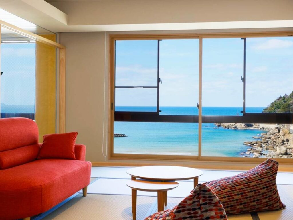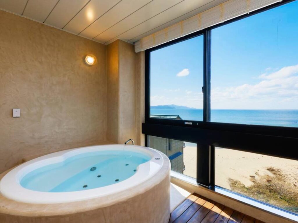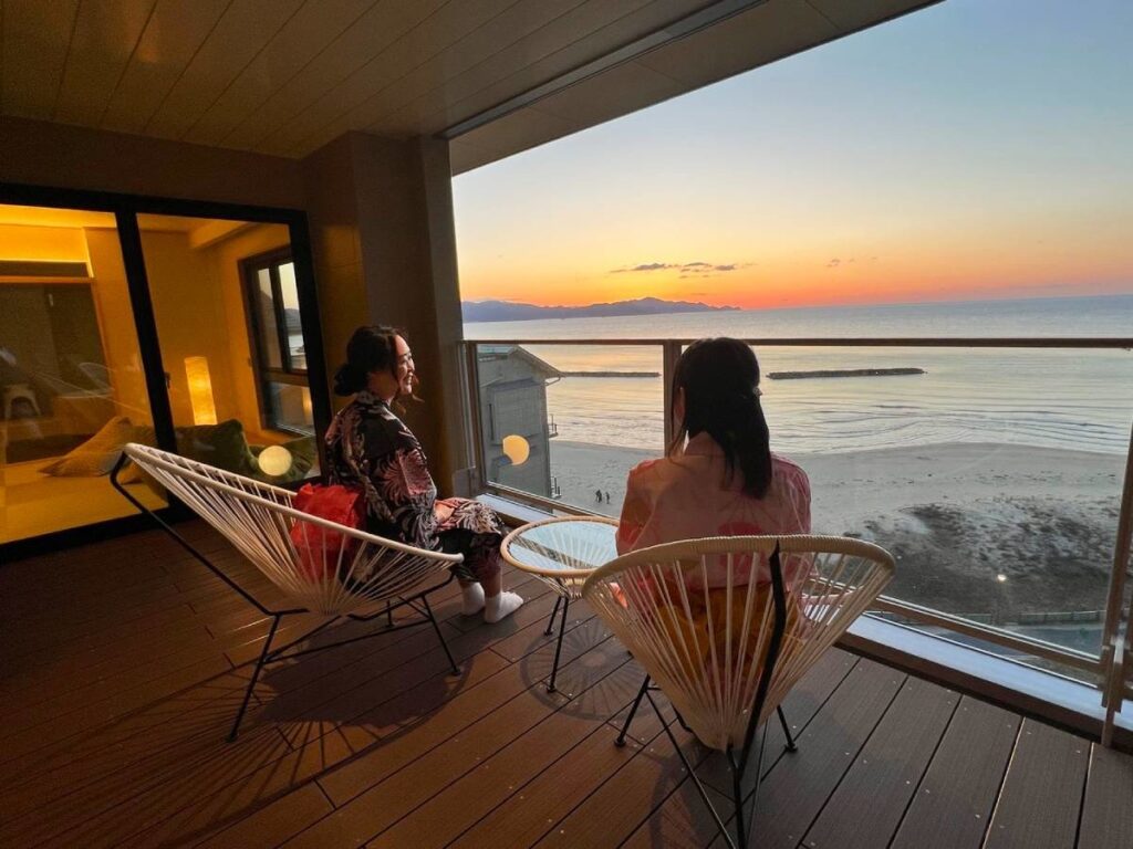 - By Car: 40 mins from Kyotango-Omiya IC (Kyoto Jukan Expy). By Train: Free shuttle from Yuhigaura-Kitsu-Onsen Station (Kyoto Tango Railway Miyatoyo Line).